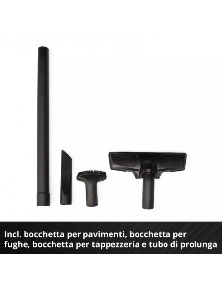 Accessori inclusi: bocchetta pavimenti, bocchetta imbottiti, bocchetta per fughe