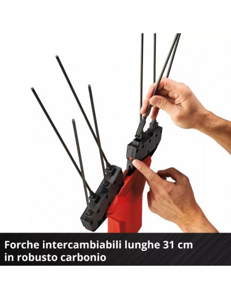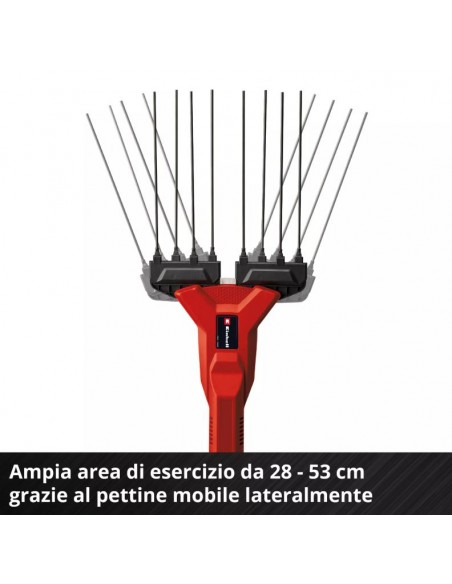 Il pettine da raccolta lavora con un movimento laterale costante che copre un’ampiezza compresa tra 28 e 53 cm, scuotendo in modo efficiente frutta e olive dai rami. Le 8 robuste aste in carbonio lunghe 31 cm assicurano resistenza e lunga durata, oltre a essere facilmente sostituibili.