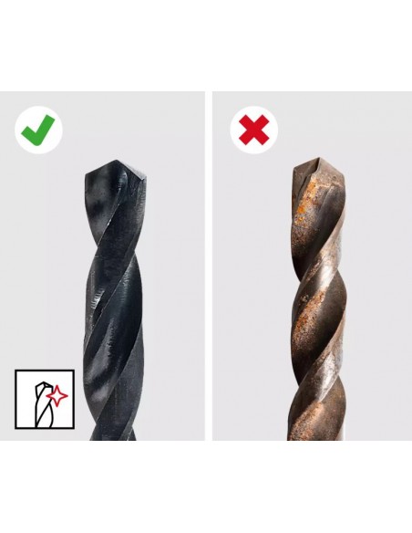 La superficie brunita nera protegge dalla corrosione, prolungando la durata delle punte. Sono ideali per la foratura di metalli non ferrosi, alluminio, plastica e lamiere, ma non adatte a acciaio inox e acciaio. Perfette per un uso occasionale nel fai-da-te, offrono risultati affidabili.