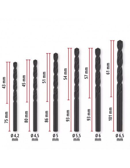 Set da 13 punte HSS-R Ø 1,5 – 6,5 mm