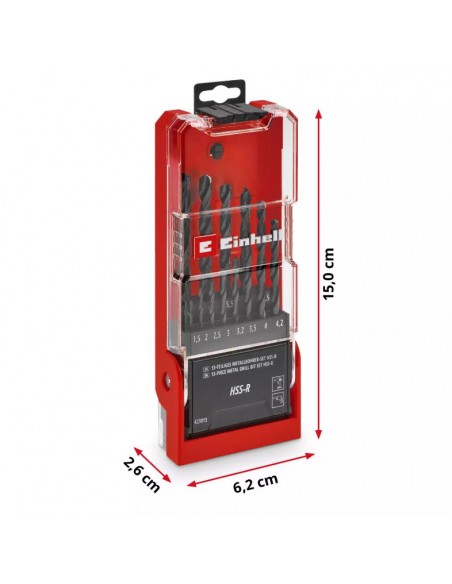 Con il Set Einhell 13 punte HSS-R avrai sempre la misura giusta per forature affidabili e precise.