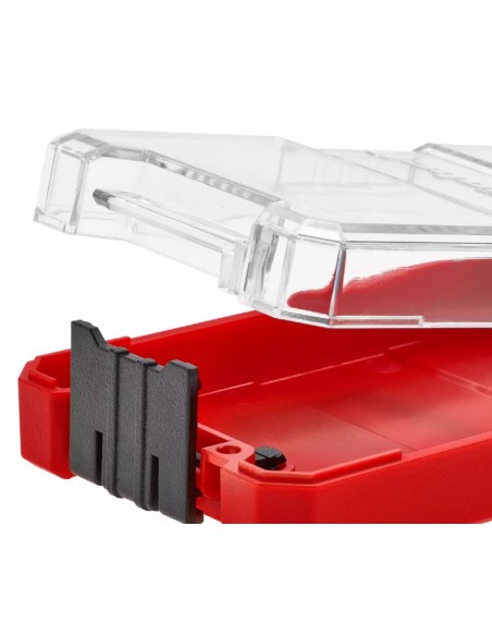 Il pratico astuccio incluso consente di riporre le punte in modo ordinato e sicuro: il coperchio trasparente offre una rapida panoramica del contenuto, mentre la chiusura a clip autobloccante assicura stabilità e protezione. Inoltre, il foro Euro integrato consente di appendere la valigetta in officina o in garage per un accesso rapido.