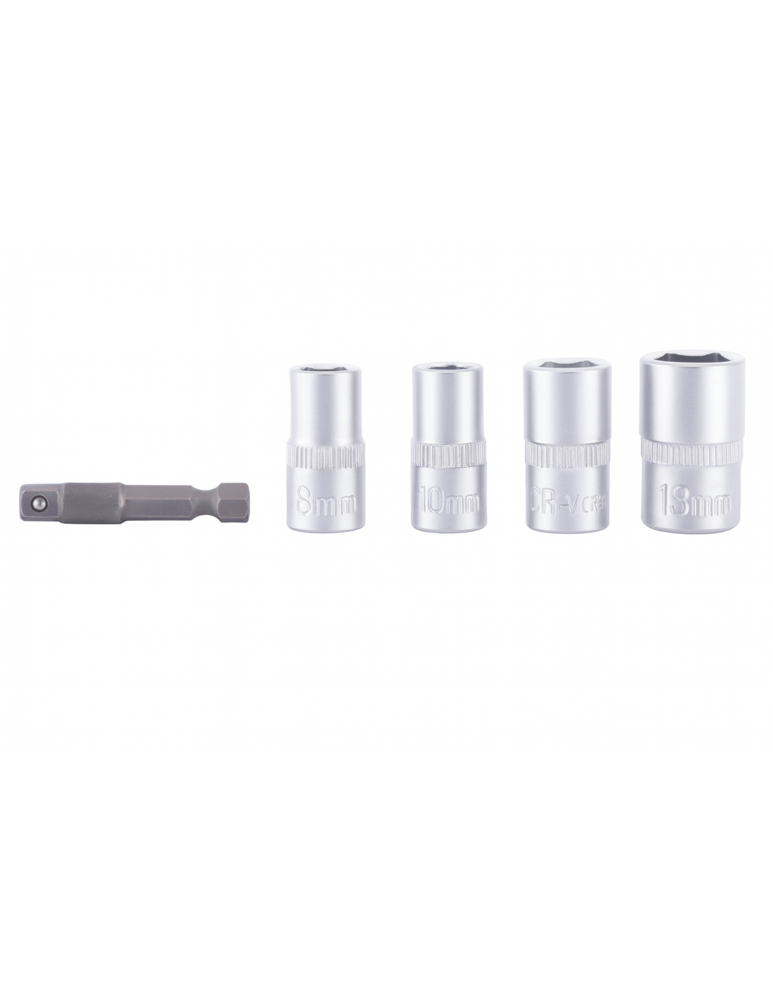 Le bussole in acciaio di alta qualità garantiscono resistenza e lunga durata, mentre le misure incluse (7, 8, 10 e 13 mm) coprono le esigenze più comuni nei lavori di montaggio, riparazione e fai-da-te.