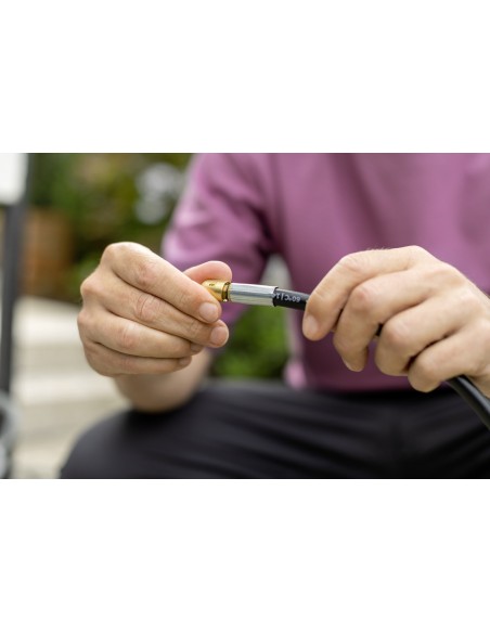 Il tubo flessibile da 15 metri è rinforzato con treccia tessile per garantire resistenza e maneggevolezza anche in sistemi di tubazioni angolati.
