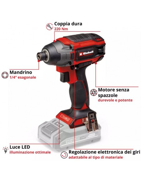 Avvitatore ad impulsi a batteria Einhell TP-CI 18/220 Li BL Professional Brushless Coppia 220 Nm attacco esagonale da 1/4"