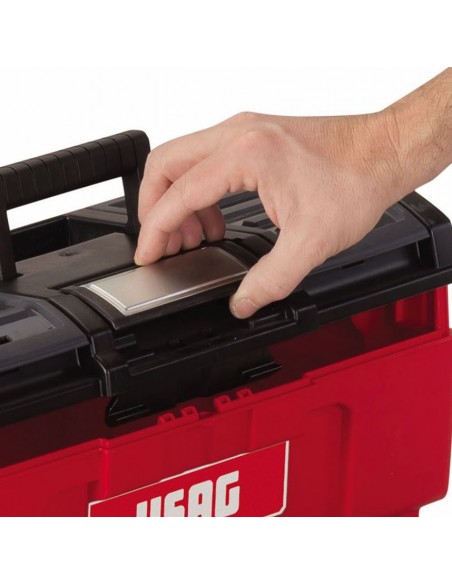 La cassetta portautensili da 16" è la soluzione pratica e resistente per organizzare e trasportare utensili e minuteria in modo ordinato. Grazie al sistema di apertura con una sola mano, risulta estremamente comoda da utilizzare anche durante i lavori in cui serve rapidità ed efficienza.