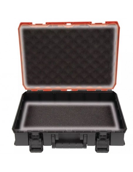 Costruita in polipropilene di alta qualità, è resistente agli urti, al calore e agli schizzi d’acqua. L’interno offre generoso spazio con dimensioni utili di 420,9 × 280,3 × 95,4 mm, ideale per riporre utensili elettrici, manuali e accessori vari. Gli inserti in schiuma inclusi proteggono il contenuto da graffi e urti durante il trasporto.