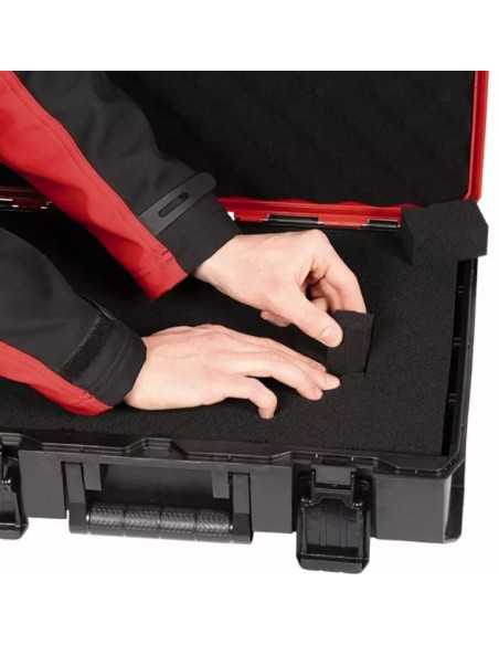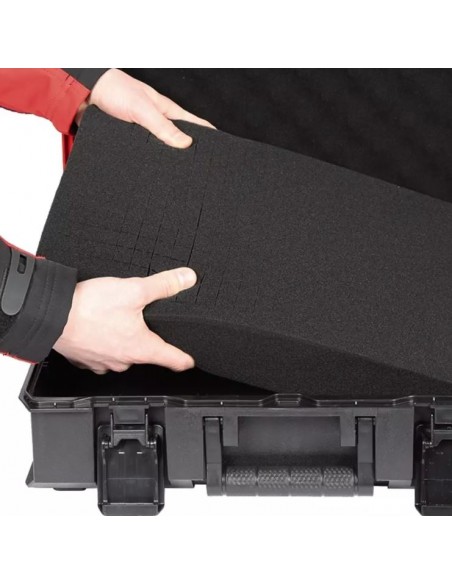 Inoltre, la valigetta include una pratica gommapiuma a incastro Grid Foam, particolarmente indicata per proteggere oggetti delicati come fotocamere, strumenti di misura e altri accessori sensibili. Grazie alla struttura adattabile, può essere modellata con precisione per creare alloggiamenti su misura e garantire una protezione ancora più efficace.