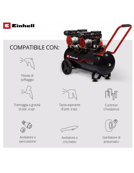 Come garanzia di qualità, Einhell offre 10 anni di copertura contro la ruggine del serbatoio. Un compressore silenzioso, potente e affidabile, pensato per professionisti ed appassionati del fai da te più esigenti.