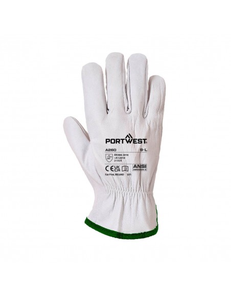 Guanti da lavoro Taglia XXL in Pelle Portwest A260 Bianco Pieno Fiore Oves Driver EN 388 2132X Autista Rigger