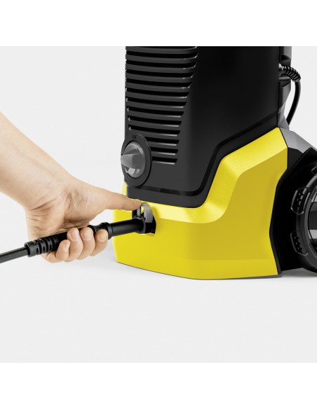 Il sistema Plug ’n’ Clean semplifica l’applicazione dei detergenti Kärcher, mentre il design compatto e robusto, con ruote integrate e cavo da 5 metri, assicura praticità e trasporto agevole.