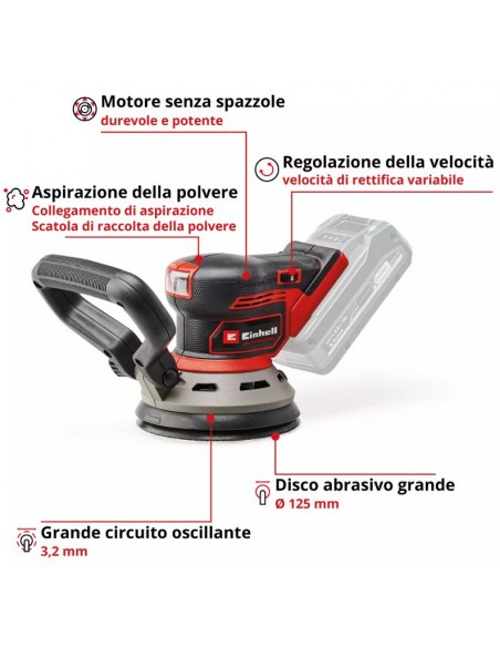 Levigatrice Rotorbitale a batteria Einhell TP-RS 18/32 Li Professional 18V Brushless disco abrasivo Ø 125 mm