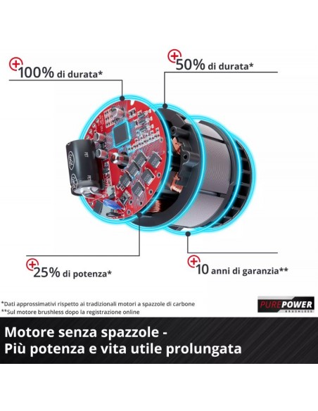 • Motore senza spazzole Einhell PurePOWER con 10 anni di garanzia