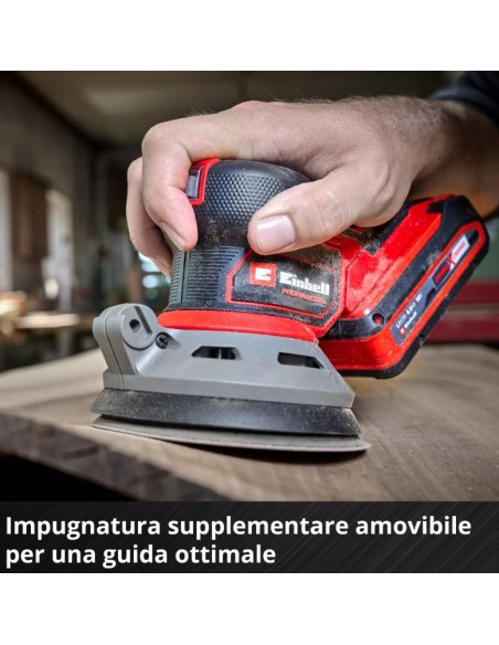 La regolazione elettronica della velocità permette di adattare la potenza al materiale, mentre la forma compatta e piatta consente di lavorare in modo preciso anche in prossimità degli angoli. L’impugnatura ergonomica con inserti Softgrip e l’impugnatura supplementare removibile garantiscono controllo totale e comfort, anche in sessioni prolungate.
