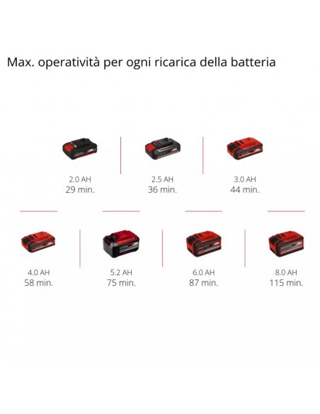 È alimentata dal potente motore Brushless Einhell PurePOWER, che assicura maggiore autonomia, più potenza e zero manutenzione. Dopo la registrazione online, il motore è coperto da una garanzia di 10 anni. Fa parte della gamma Power X-Change, quindi compatibile con tutte le batterie e caricabatterie della stessa piattaforma.