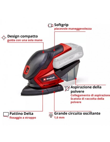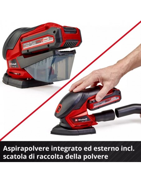 La levigatrice orbitale a batteria TE-OS 18/150 Li - Solo di Einhell è lo strumento perfetto per chi cerca massima maneggevolezza, rapidità di cambio carta e prestazioni elevate.