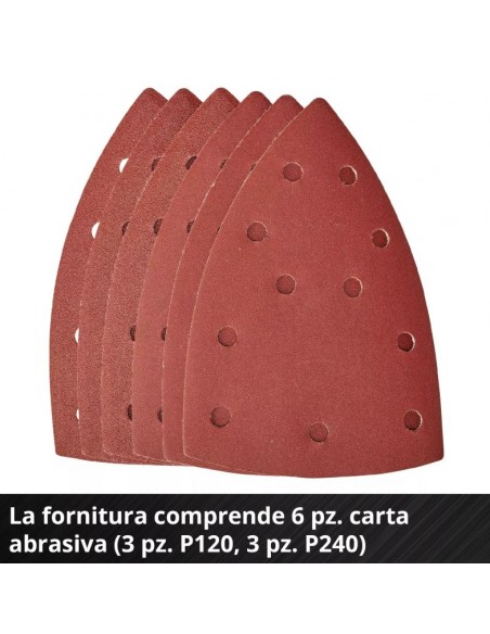 Fornita con 6 fogli abrasivi (3x grana 120 e 3x grana 240)