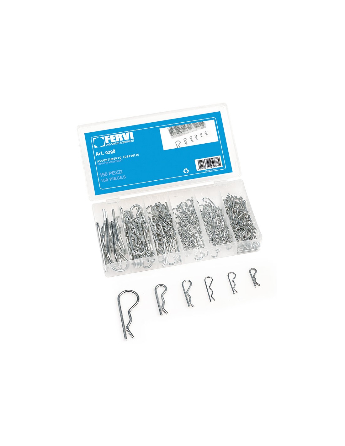 Assortimento 150 coppiglie di sicurezza in acciaio zincato Fervi 0298 kit di manutenzione