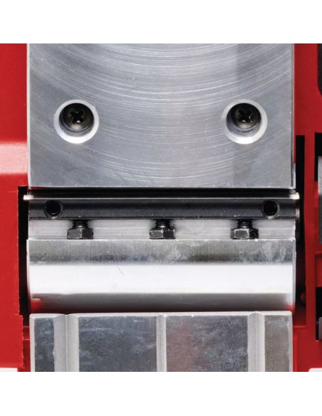 La pedana in alluminio massiccio, ampia e levigata, assicura una guida stabile, mentre le 3 scanalature a V integrate facilitano la smussatura dei bordi con grande precisione. Con una profondità di piegatura fino a 18 mm e battuta di profondità regolabile, consente lavorazioni nette e controllate.