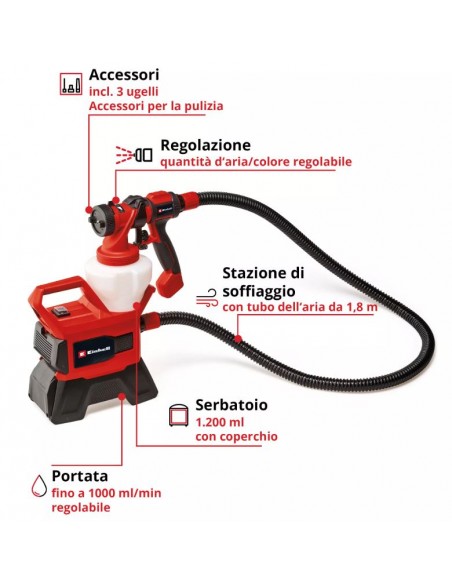 Pistola a spruzzo a batteria Einhell 18V con accessori per vernici e pitture