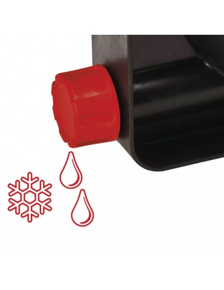 Dotata di ampia apertura di riempimento con indicatore visivo, è facile da preparare all’uso. Dopo il lavoro, l’acqua residua può essere rimossa rapidamente tramite la vite di scarico, evitando danni da gelo nei mesi più freddi. Il dispositivo di protezione termica integrato protegge il motore da eventuali sovraccarichi.