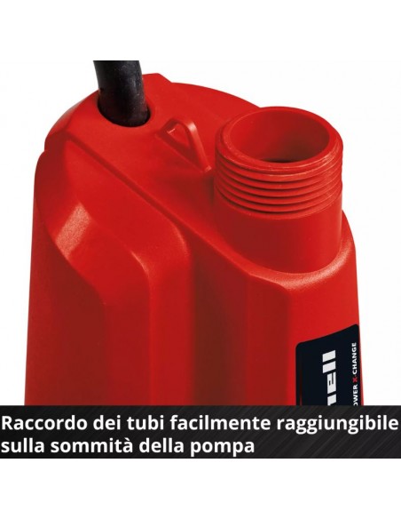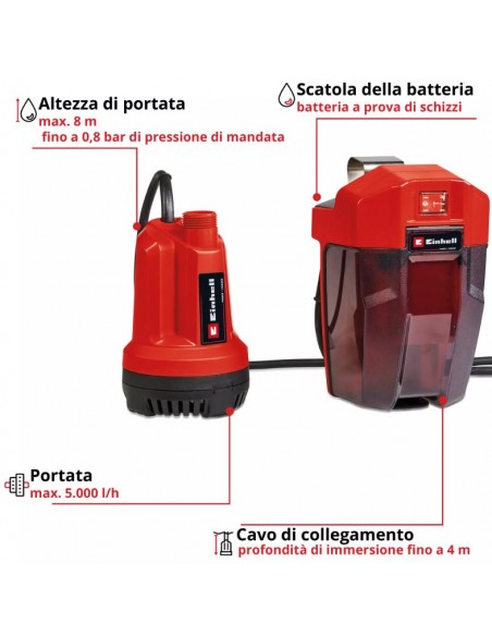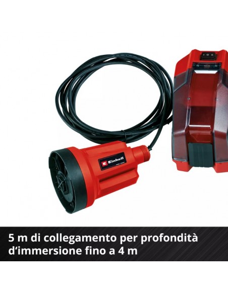 Pompa a immersione Einhell sommersa a batteria 18V per acque chiare portata fino a 5 mila litri ora