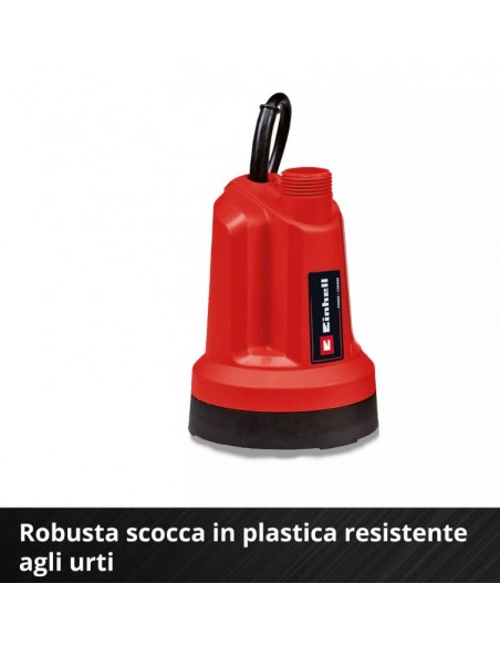 Il corpo pompa in plastica antiurto assicura robustezza e resistenza nel tempo, mentre il collegamento tubo posto sulla parte superiore facilita le operazioni di connessione. Funziona con una girante, ideale per acque pulite prive di detriti.
