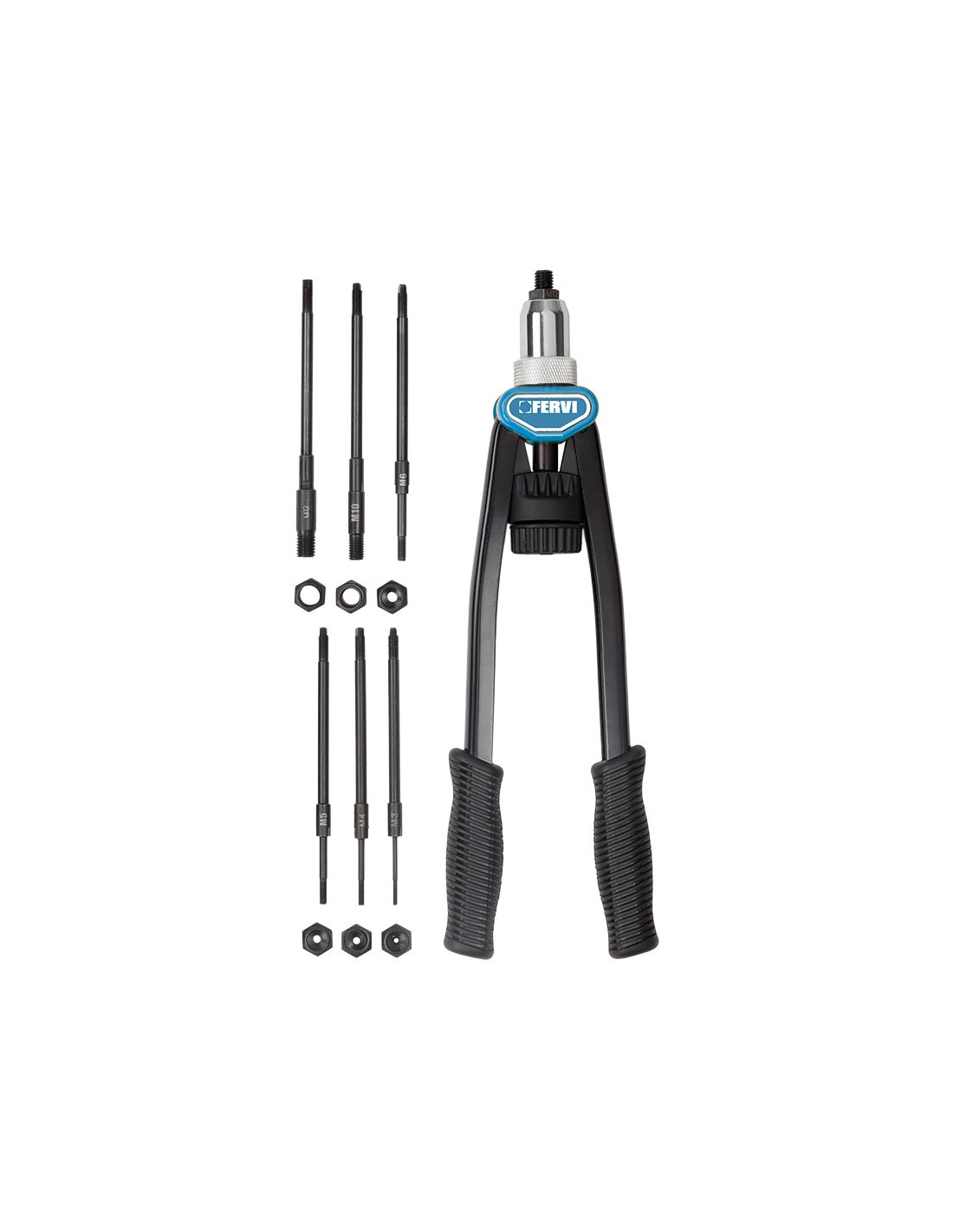 Rivettatrice a doppia leva Fervi 0455 per inserti filettati con 7 tiranti e 7 testine