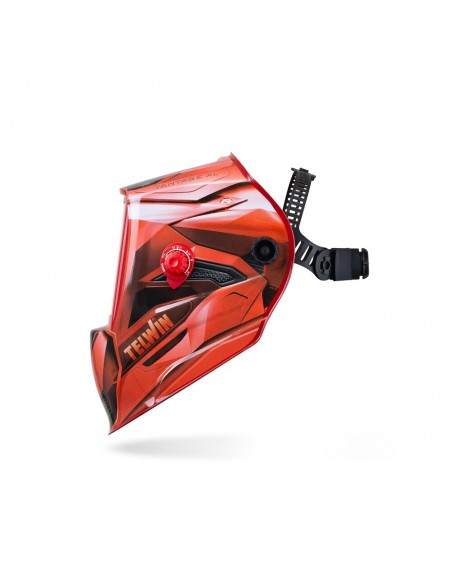 La Telwin Vantage Red XL è una maschera automatica a caschetto per uso industriale, ideale per tutti i tipi di saldatura: MMA, TIG (>2A) e MIG-MAG. Offre una protezione visiva avanzata grazie alla classe ottica 1/1/1/2 e al funzionamento a cella solare, senza necessità di batterie.