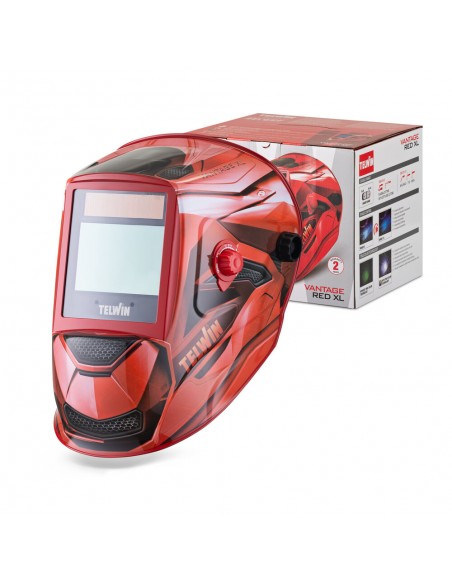 Maschera automatica Telwin Vintage Red XL per saldatura campo visivo ampio MMA-TIG MIG-MAG