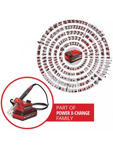 Il saldatore è dotato di un cavo lungo 130 cm, che contribuisce a migliorare la flessibilità d’uso tra base e manipolo. Essendo compatibile con il sistema Power X-Change, rappresenta una scelta ideale per chi possiede già batterie e caricabatterie Einhell della stessa gamma.