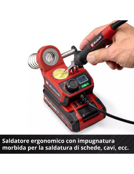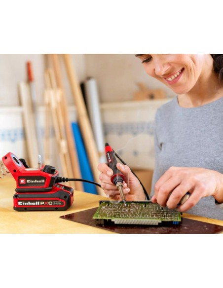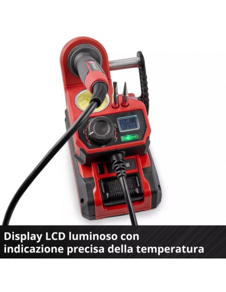 Grazie alla temperatura regolabile, al display LCD e alla dotazione completa di accessori, il saldatore Einhell offre tutto il necessario per eseguire lavorazioni accurate su schede elettroniche, cavi, fili e piccoli componenti.