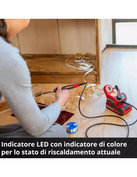 Un LED luminoso segnala inoltre lo stato di riscaldamento dell’utensile, rendendo più semplice capire quando il saldatore è pronto all’uso e migliorando la praticità generale durante il lavoro.