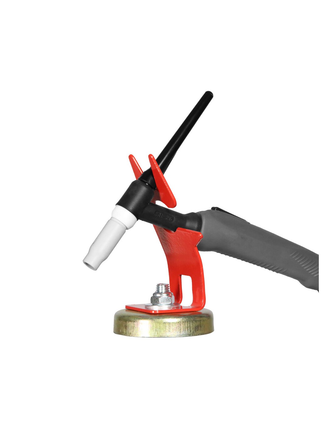 Il supporto per torcia TIG Telwin con base magnetica di diametro di 86 mm rende molto più facile il maneggiamento della torcia.