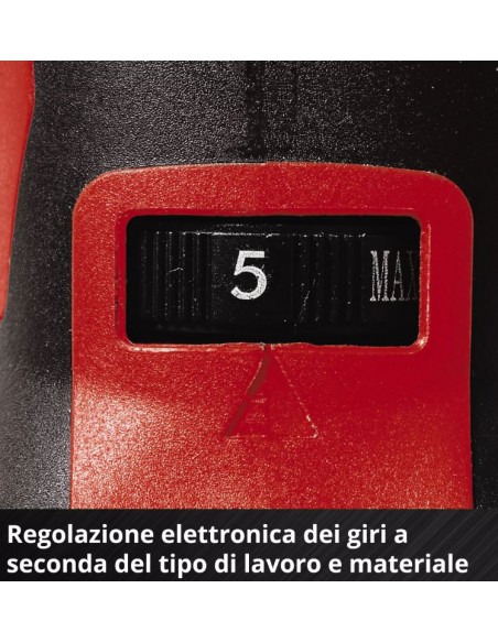 L’impugnatura ergonomica Softgrip e il portabatteria disaccoppiato garantiscono comfort e riduzione delle vibrazioni durante l’uso prolungato. La regolazione elettronica della velocità consente di adattare la potenza al materiale o all’accessorio utilizzato.