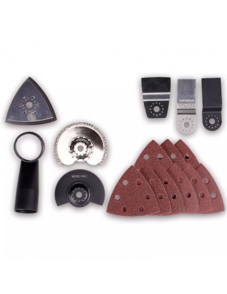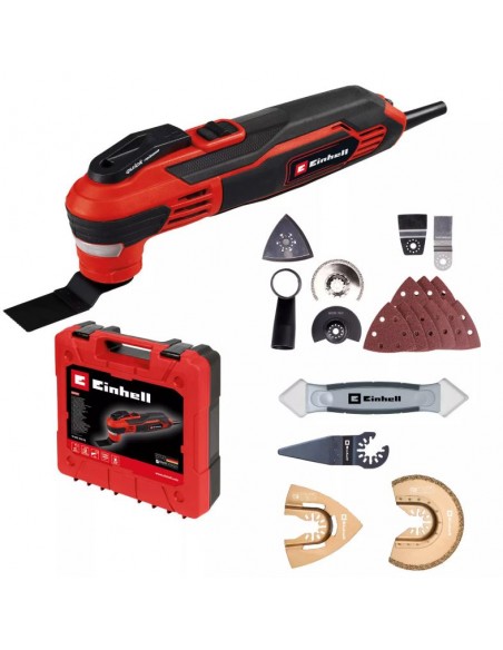 L'utensile multifunzione Einhell TE-MG 350 EQ è il compagno ideale per ogni appassionato di fai-da-te che cerca uno strumento potente, preciso e versatile per affrontare una vasta gamma di lavori di taglio, levigatura, raschiatura e rimozione. Che tu debba segare legno, plastica, metallo o eliminare le fughe delle piastrelle, questo utensile risponde con prestazioni professionali e grande maneggevolezza.