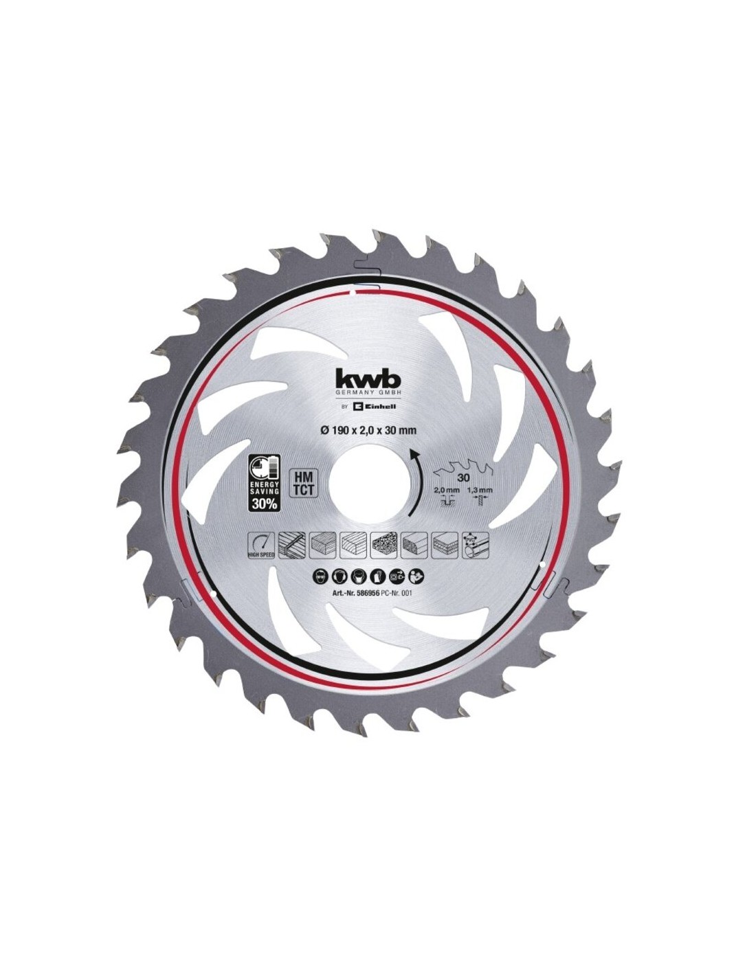 Lama per sega circolare Einhell 190x30 mm Taglio 2,0 mm per legno duro e PVC denti 20