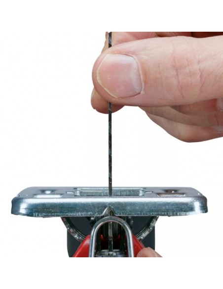 La piastra girevole permette tagli obliqui fino a 45°, ampliando le possibilità di lavorazione. Il porta-lama universale senza attrezzi semplifica al massimo il cambio delle lame (attacco a T), rendendo il lavoro più veloce ed efficiente.