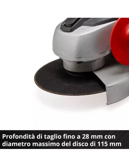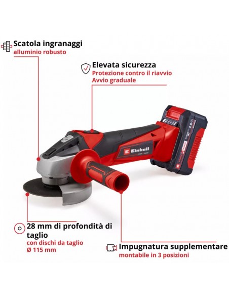 Smerigliatrice frullino EINHELL TC-AG 18/115 Li con una Batteria da 4 Ah 18V disco 115 mm