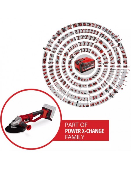 La smerigliatrice angolare a batteria Einhell AXXIO 36/230 Q è la scelta ideale per professionisti e appassionati del fai-da-te che cercano la massima libertà di movimento senza rinunciare alla potenza. Fa parte della famiglia Power X-Change e funziona con 2 batterie da 18 V grazie alla tecnologia TWIN-PACK, raggiungendo una potenza equivalente a 2200 W, pari a un utensile a filo.