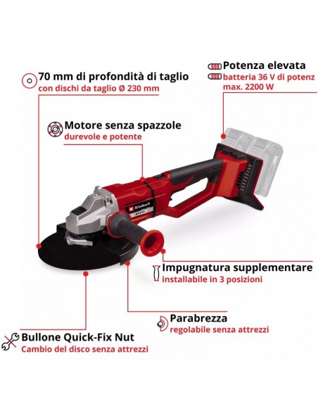Smerigliatrice angolare AXXIO 36/230Q frullino a batteria Einhell 36V disco 230 mm