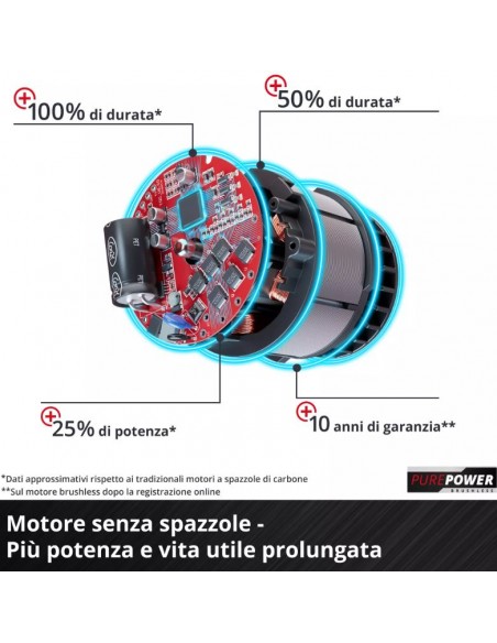 • Potenza equivalente a 2200 W grazie al sistema TWIN-PACK 36V