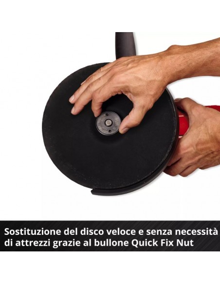 Dotata di un motore brushless (senza spazzole), garantisce prestazioni elevate, maggiore efficienza energetica e una lunga durata. Il dado rapido per il disco consente una sostituzione facile e senza utensili, mentre la protezione del disco con regolazione rapida offre flessibilità e sicurezza durante il lavoro.