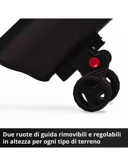 Dotato di un sacco di raccolta da 45 litri con finestrella per controllare il livello di riempimento, il GE-CL 36/230 Li-Solo è pensato per il comfort: impugnatura ergonomica Softgrip, funzione anti-vibrazioni, impugnatura supplementare regolabile e cinghia di trasporto inclusa. Le ruote di guida regolabili in altezza garantiscono praticità anche su terreni difficili.