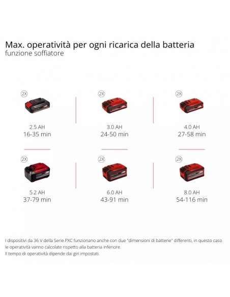 Non solo estetica: eliminare il fogliame è anche una questione di sicurezza, perché previene rischi di scivolamento su superfici bagnate. Questo apparecchio combina potenza, versatilità e libertà dai cavi, grazie al sistema Power X-Change, che utilizza due batterie da 18 V (36 V complessivi).
