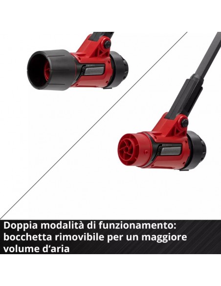 Il ventilatore assiale genera un flusso d’aria uniforme, mentre la modalità doppia (con o senza ugello) consente di scegliere tra potenza massima o precisione di direzione.