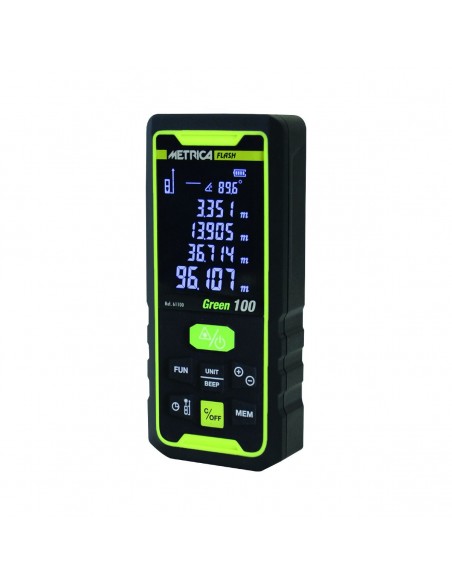 Il Metrica Flash Green 60 m è il misuratore laser professionale che unisce alta precisione, tecnologia avanzata e massima leggibilità.