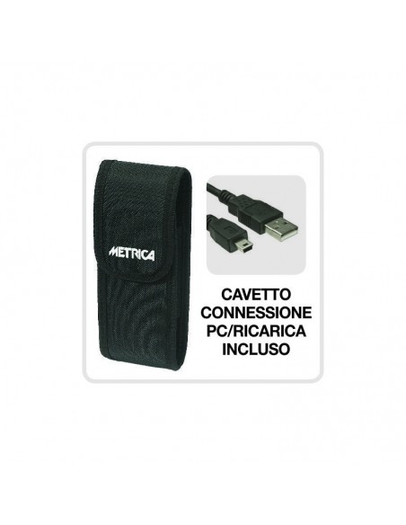Dispone di 99 memorie, autospegnimento, batterie ricaricabili via USB e attacco treppiede 1/4”, il tutto racchiuso in un corpo compatto, robusto e protetto da una pratica custodia con cinghietta.