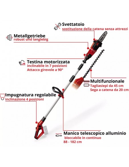 Einhell GE-HC 18 Li T – Utensile multifunzione telescopico 2 in 1 per potatura e taglio siepi