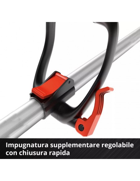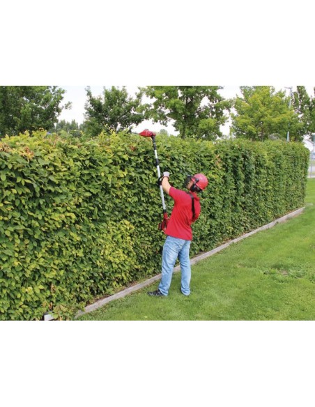 Il tagliasiepi integrato ha una lama da 45 cm in acciaio tagliato al laser e diamantato, con lunghezza utile di 40 cm e dentatura da 16 mm, per un taglio pulito su siepi e arbusti. La testa motore orientabile in 7 posizioni e l’impugnatura rotante in 4 posizioni permettono di lavorare con precisione in ogni angolazione.